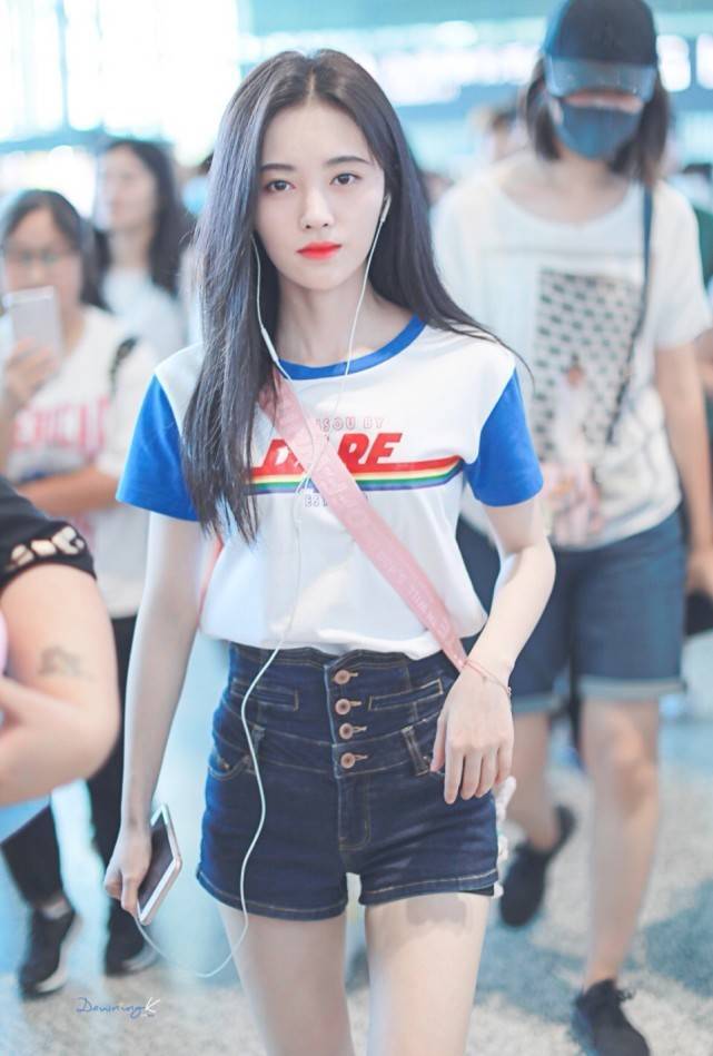 她身着高腰牛仔短裤,搭配简约T恤,完美秀出纤细腰围,小细腿也十分吸睛。