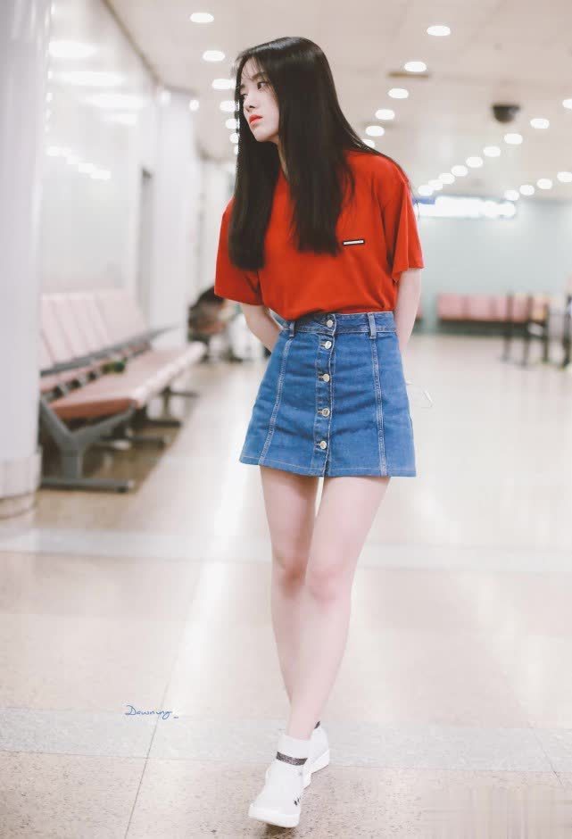 正是由于身材娇小,鞠婧祎的穿搭大多采用塞衣角的方式。