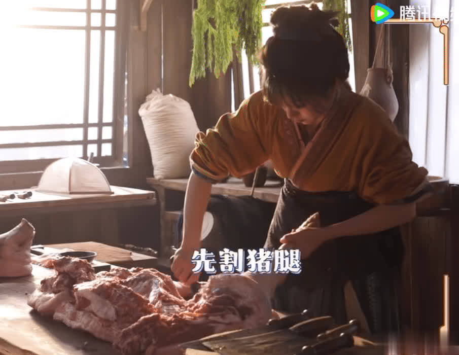 不仅如此,就连井井有条地按照纹理割猪腿也不是胡乱来的。