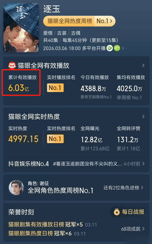 不愧是由双一线平台保驾护航的作品,《逐玉》这样的数据也算是不负众望了。