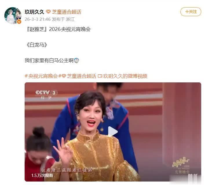 这场表演的编排也被赞充满巧思。在农历马年唱响《白龙马》,既暗合“马踏新程”的吉祥寓意,又通过国民级IP《西游记》瞬间唤醒跨代集体记忆。粉丝感慨这是“童年女神唱童年神曲,双厨狂喜”,更是一次“与西游文化的梦幻联动”,在团圆之夜传递出“福气奔向你”的温暖祝福。